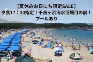 千鳥ヶ浜海水浴場目の前!イン前アウト後、屋外プール、シャワー、駐車場無料!プール&海を満喫!宿から海まで0分!水着のまま海水浴場へ行けます!夜は花火も大人気!