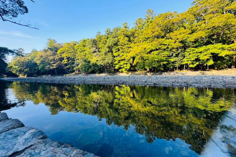 五十鈴川(いすずがわ)は、古くから神聖視されています。五十鈴川の名前は、「五十鈴の川の水」といった意味があり、清らかな流れが特徴です。