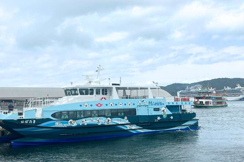 鳥羽定期船ミジュマル船、その奥は鳥羽湾めぐりイルカ島への船、ダイアモンドプリンセス号