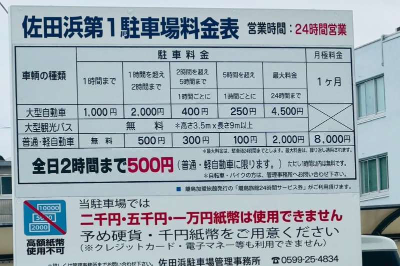 ミジュマル公園と近くに佐田浜第一駐車場1時間までは無料です