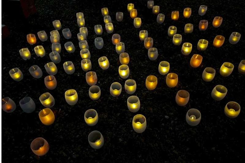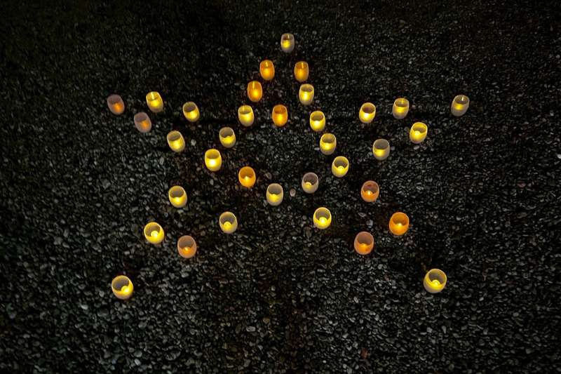 神明神社境内は、優しいキャンドルの光で照らされ、幻想的な雰囲気が漂います。